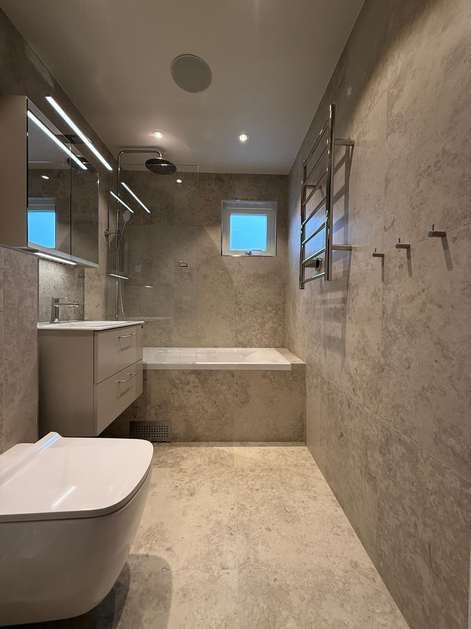 Vi anlitade Hembyggarna för vårt badrum och vi är så nöjda. Allt är gjort noggrant och på rätt sätt. Det märks att de kan det de gör och vill att det ska bli bra. All kommunikation oss emellan har också fungerat jättebra. De är tydliga, tillmötesgående och har alltid ett trevligt bemötande. Ser redan fram emot nästa badrum som blir redan nästa år!